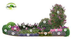 Kujunduspildil on kõik õitsvad taimed kujutatud õitega, et näidata ära taime dekoratiivsus. Õiteilu jagub kasvuperioodil istutusala erinevatesse osadesse ja eri aegadele. Lisage kindlasti taimede vahele kevadisi sibullilli.