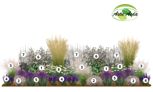 Kujunduspildil on kõik õitsvad taimed kujutatud õitega, et näidata ära taime dekoratiivsus. Õiteilu jagub kasvuperioodil istutusala erinevatesse osadesse ja eri aegadele.